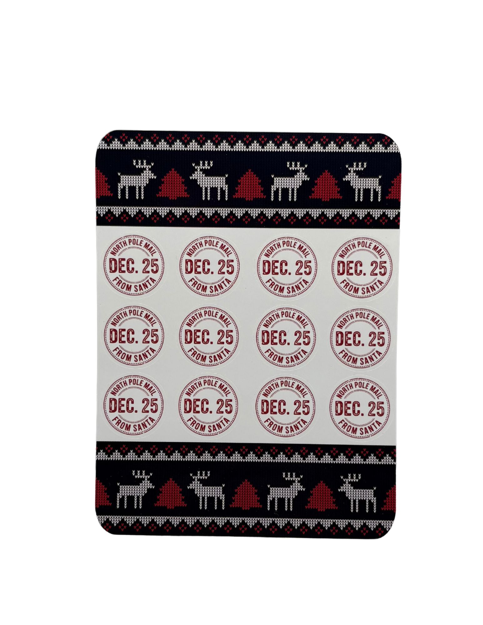 Bring festive charm to your holiday correspondence with this North Pole Mail Christmas Sticker Sheet. Featuring charming postal-themed designs perfect for gift wrapping, card embellishment, and seasonal crafts, each sticker captures the magic of Christmas mail traditions. The high-quality adhesive ensures reliable application to envelopes, packages, and decorative projects. Ideal for adding authentic holiday flair to your seasonal mailings and creative endeavors throughout the festive season. 12 Circular Stickers. 4.5"x6".